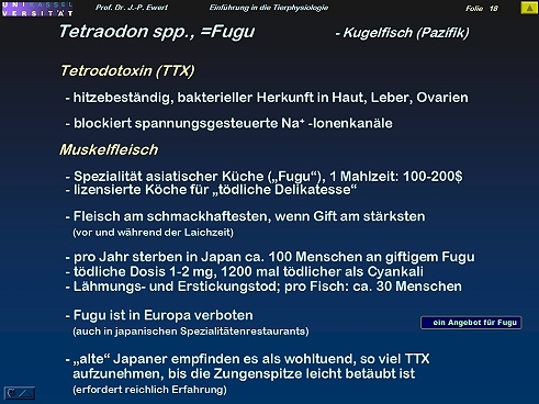 Block12: Verhaltensphysiologie (Neuroethologie) Neuronenschal-tungen, Programmsteuerung (Tritonia); Signal-Erkennung, Auslöse-mechanismen (Kröte); Motorische Systeme (Mensch), Parkinsonismus