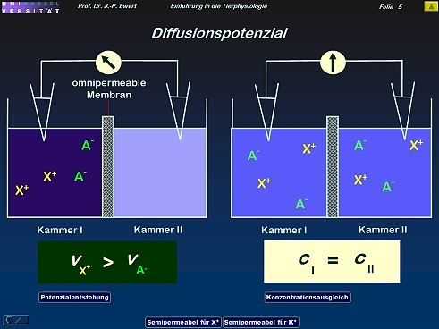 - Diffusionspotenzial: Wie entsteht ein Potenzialunterschied aufgrund verschiedener Ionen-Wanderungsgeschwindigkeiten?