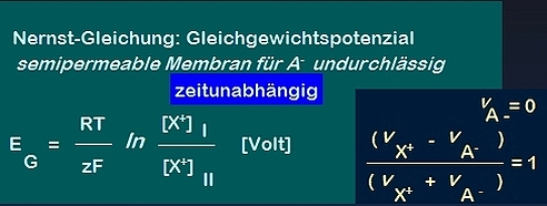 Diffusionspotenzial: Wie entsteht ein Potenzial-Unterschied aufgrund unterschiedlicher Ionen-Wanderungsgeschwindigkeiten v ? Kationen X+ und Anionen A- an einer omnipermeablen Membran: