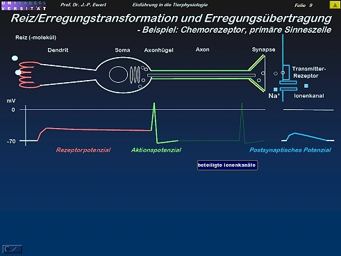 Die Grafiken – von J.-P. Ewert entwickelt und konzipiert – dürfen verwendet werden mit der Quellenangabe http://www.joerg-peter-ewert.de . Grundlage: Ewert: „Einführung in die Neurobiologie“, Vorlesung (Stand: 2006), Fachbereich Naturwissenschaften, Universität Kassel. Eine Aufzeichnung des Textes befindet sich oben unter: O-Text 1-12.