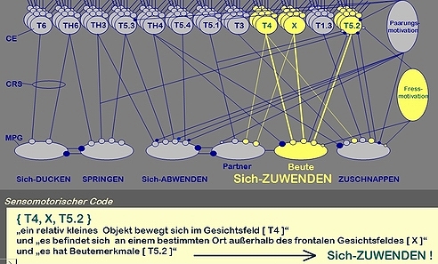 Modellvorstellung: Welche Neuronenschaltungen liegen denReaktionen auf Beute, Nicht-Beute bzw. Feind zugrunde?