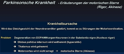 - Krankheiten des motorischen Systems: Worauf beruht Parkinsonismus (Rigor, Akinese, Tremor)?