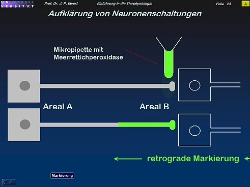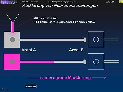 Wie lassen sich Senderegionen für Informationen im Gehirn auffinden?Aufnahme eines Markierungsstoffes durch die Axonendigung: