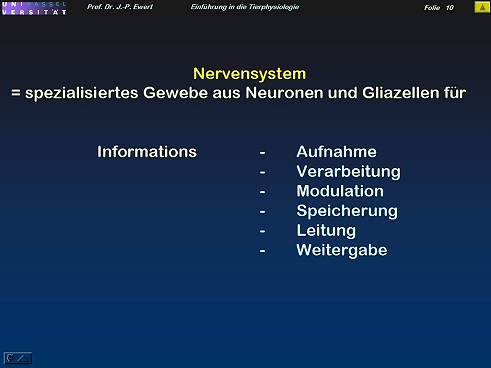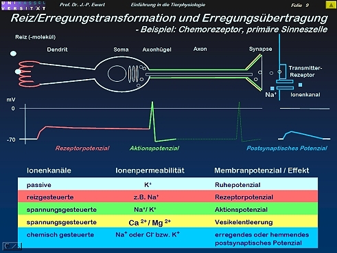 Die Grafiken – von J.-P. Ewert entwickelt und konzipiert – dürfen verwendet werden mit der Quellenangabe http://www.joerg-peter-ewert.de . Grundlage: Ewert: „Einführung in die Neurobiologie“, Vorlesung (Stand: 2006), Fachbereich Naturwissenschaften, Universität Kassel. Eine Aufzeichnung des Textes befindet sich oben unter: O-Text 1-12.