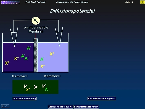 - Diffusionspotenzial: Wie entsteht ein Potenzialunterschied aufgrund verschiedener Ionen-Wanderungsgeschwindigkeiten?