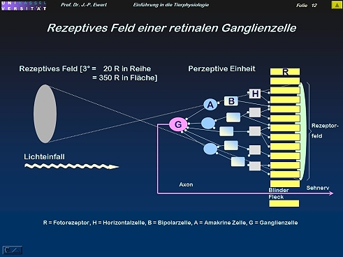 Diploma Theses Rehn, B. (1969) Die Wirksamkeit optischer Reizmuster beim Auslösen des Fluchtverhaltens der Wechselkröte. Diplomarbeit Dipl. Biol., Abt. Neuroethologie, Zoologisches Institut, Fakultät für Chemie, Biologie, Geologie und Mineralogie, Technische Hochschule Darmstadt Kleinlogel, H. (1969) Jahreszeitliche Änderung der Wischaktivität der Erdkröte (Bufo bufo L.) bei taktiler Reizung im Trockenen, im Wasser und in KCl- und NaCl-Lösungen. Diplomarbeit Dipl. Biol., Abt. Neuroethologie, Zoologisches Institut, Fakultät für Chemie, Biologie, Geologie und Mineralogie, Technische Hochschule Darmstadt Borchers, H.-W. (1970) Neurophysiologische Untersuchungen zur Zeichenerkennung beim Beutefang der Erdkröte (Bufo bufo L.). Diplomarbeit Dipl. Biol., Abt. Neuroethologie, Zoologisches Institut in Verbindung mit dem Institut für Regelungstechnik, Technische Hochschule Darmstadt Gebauer, L. (1971) "Tiefenwahrnehmung" und "Objekt-Größen-Konstanz" im Beutefangverhalten der Erdkröte (Bufo bufo L.). Diplomarbeit Dipl. Biol., Abt. Neuroethologie, Zoologisches Institut, Fachbereich Biologie, Technische Hochschule Darmstadt Wietersheim von, A. (1972) Die Neuroanatomie der retinotectalen Projektion bei Frosch und Kröte. Diplomarbeit Dipl. Biol., Abt. Neuroethologie, Zoologisches Institut, Fachbereich Biologie, Technische Hochschule Darmstadt Pfeiffer, E. (1975) Musterauswertung durch retinale Ganglienzellen beim Frosch (Rana esculenta L.). Diplomarbeit Dipl. Biol., Abt. Neuroethologie, Zoologisches Institut, Fachbereich Biologie, Technische Hochschule Darmstadt in Verbindung mit der Organisationseinheit Naturwissenschaften und Mathematik OE03, Gesamthochschule Kassel Framing, E. M. (1986) Extrazelluläre Ableitungen visuell sensitiver Neuronen in der Medulla oblongata der Erdkröte Bufo bufo spinosus. Diplomarbeit Dipl. Biol.,Abt. Neuroethologie, Fachbereich Biologie/Chemie, Gesamthochschule Kassel Universität des Landes Hessen Spreckelsen, C. (1987) Relation zwischen neuronalen Aktivitäten in der Medulla oblongata und Bewegungsmustern bei der Erdkröte. Diplomarbeit Dipl. Biol.,Abt. Neuroethologie, Fachbereich Biologie/Chemie, Gesamthochschule Kassel Universität des Landes Hessen in Verbindung mit dem Fachbereich Biologie der Universität Marburg Dinges, A. (1992) Untersuchung interokularen Transfers bei monokular konditionierten Erdkröten Bufo bufo spinosus. Diplomarbeit, Dipl.-Biol., Abt. Neurobiologie, Fachbereich Biologie/Chemie, Univ. Kassel Falaturi, P.H. (1992) Quantitative Untersuchungen über nichtassoziatives Lernen: Habituation sensorisch auslösbarer Verhaltensweisen bei Kröten. Diplomarbeit, Dipl.-Biol., Abt. Neurobiologie, Fachbereich Biologie/Chemie, Univ. Kassel Gernert, M. (1994) Zur Frage einer dopaminergen Beeinflussung visuell evozierter Feldpotentiale im Tectum opticum der Agakröte Bufo marinus L. Diplomarbeit, Dipl.-Biol., Abt. Neurobiologie, Fachbereich Biologie/Chemie, Univ. Kassel Wachowitz, S.M. (1994) Quantitative Untersuchungen zur visuellen Musterunterscheidung beim Beutefang der Agakröte Bufo marinus L. Diplomarbeit, Dipl.-Biol., Abt. Neurobiologie, Fachbereich Biologie/Chemie, Univ. Kassel Lück, G. (1997) Der Einfluß von nachträglichen Montageveränderungen bei der Ableitung von evozierten Potentialen des motorischen Cortex am Menschen mit Hilfe der papierlosen EEG-Technik. Diplomarbeit, Dipl.-Biol., Abt. Neurobiologie, Fachbereich Biologie/Chemie, Univ. Kassel Weiß, I. (1997) Vergleichende Untersuchungen der EEG-Wellen am Beispiel von Antworten aus dem motorischen Cortex mit Hilfe der visuellen und computergestützten Frequenzanalyse. Diplomarbeit, Dipl.-Biol., Abt. Neurobiologie, Fachbereich Biologie/Chemie, Univ. Kassel Mahjouri-Gozarian, M. (1997) Zur Optimierung der Lernfunktionen des künstlichen neuronalen Backpropagation-Netzes "ODANN". Diplomarbeit, Dipl.-Biol., Abt. Neurobiologie, Fachbereich Biologie/Chemie, Univ. Kassel Wespertat, V. (1997) Methode zur Untersuchung des Einflusses von ACE-Inhibitoren auf Summenpotentiale in Hippocampus-Slices der Ratte. Diplomarbeit, Dipl.-Biol., Abt. Zentrale Pharmaforschung der Hoechst AG Frankfurt und Abt. Neurobiologie, Fachbereich Biologie/Chemie, Univ. Kassel Zeißler, U. (1998) Computergestützte Untersuchungen von Funktions-EEGs des motorischen Cortex mit verringertem Elektrodenabstand im Vergleich zu der 10-20-Elektrodenanordnung. Diplomarbeit, Dipl.-Biol., Abt. Neurobiologie, Fachbereich Biologie/Chemie, Univ. Kassel Dreisvogt, F. (1998) Untersuchung zur Anwendung des Amplituden-Mappings bei der EEG-Technik mit Hilfe von Ableitungen aus dem motorischen Cortex. Diplomarbeit, Dipl.-Biol., Abt. Neurobiologie, Fachbereich Biologie/Chemie, Univ. Kassel Krenz, H. (2002) Einfluß unterschiedlicher Sitzpositionen des Menschen auf das Elektroenzephalogramm: eine computergestützte Analyse. Diplomarbeit, Dipl.-Biol., Abt. Neurobiologie, Fachbereich Biologie/Chemie, Univ. Kassel Gruner, D. (2004) Computergestützte Analyse zum Einfluss des Kurzschlafs auf die EEG-Aktivität des Menschen. Diplomarbeit, Dipl.-Biol., Abt. Neurobiologie, Fachbereich Biologie/Chemie, Univ. Kassel Hasslinger, A. (2004) Untersuchungen zum Einfluss von Tageszeit-abhängigen Blutdruckschwankungen auf die Hirnwellenaktivität des Menschen mit Hilfe der Elektroenzephalographie (EEG). Diplomarbeit, Dipl.-Biol., Abt. Neurobiologie, Fachbereich Biologie/Chemie, Univ. Kassel Möller, H. (2005) Untersuchung kortikaler Unterschiede im EEG von Ausdauersportlern und Nichtsportlern. Diplomarbeit, Dipl.-Biol., Abt. Neurobiologie, Fachbereich Naturwissenschaften, Univ. Kassel