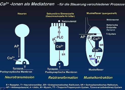 - Vergleichende Betrachtung: Bei welchen Zelltypen - beispielsweise - kann Ca2+ als Mediator in unterschiedliche Funktionen eingebunden sein?