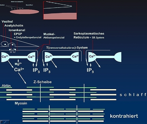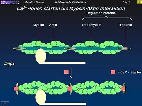 - Wie verändert Ca2+ als Starter die räumliche Zuordnung zwischen Myosin und Aktin?