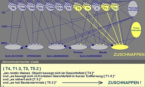 - Modellvorstellung: Welche Neuronenschaltungen liegen den Reaktionen auf Beute, Nicht-Beute bzw. Feind zugrunde?