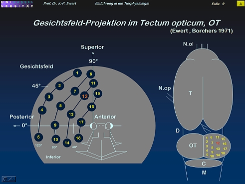 - Wie wird das Gesichtsfeld im Krötenhirn abgebildet?